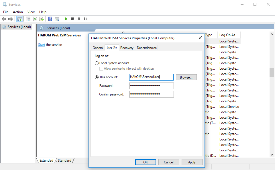Running the WebTSM Services as a Windows Service