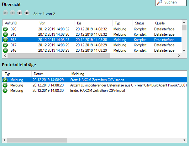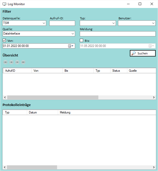 Das Ergebnis der Suche wird unter Übersicht bzw. Protokolleinträge in einer Tabelle angezeigt.