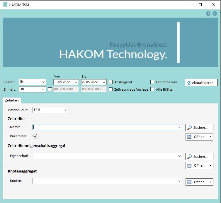 Per Klick auf den Button "HAKOM TSM" wird der Login durchgeführt und das Zeitreihen Plug-in aufgerufen.