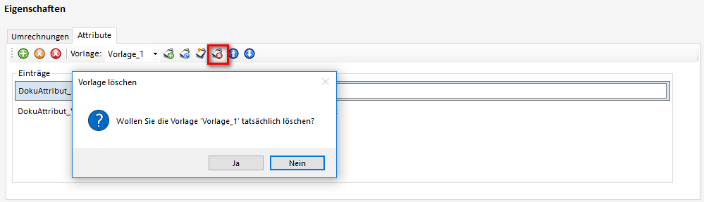 Durch Klick auf den Button "Ausgewählte Vorlage löschen" wird die Vorlage nach Bestätigung gelöscht: