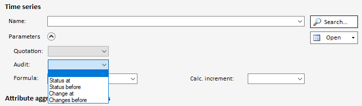 If data is saved on an audit time series, the time of saving is entered into the database as the audit time. This new time is then also available in the drop-down list.