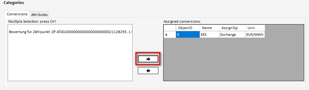 Select the conversion time series that should be removed from the assigned conversions and click on the arrow-left button: