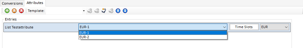 In this example the attribute "List Testattribut" was assigned a unit, which can have the values "1" or "2".