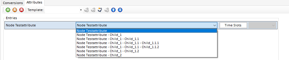 It is possible to assign attribute values that change over time. This can be achieved by clicking on the "Time Slots" button.