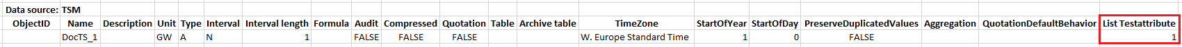 In this example the time series was assigned the attribute "List Testattribut" with the unit "EUR" and one of its values.