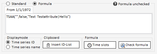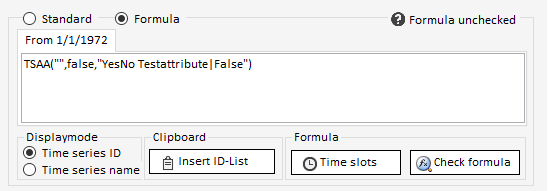 In this example the name of the time series contains quotation marks. To process these, for each quotation mark in the name, another one has to be added in the formula.