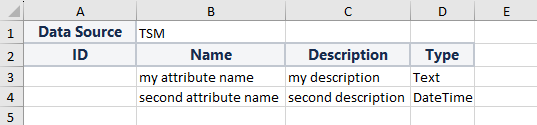 The fields from this table are mandatory for a master data import. When it comes to attributes additional fields have to be used. These are shown and explained in the template, which can be opened by clicking on "Import template with data examples".