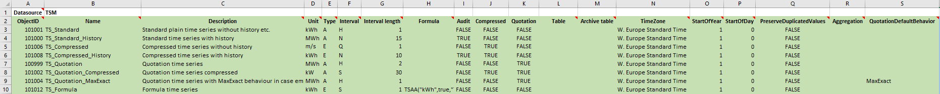 If data is re-imported from Excel (existing data in the data base is updated) the ObjectID has to stay the same and shall not be edited (For more information see: Time series Master Data).