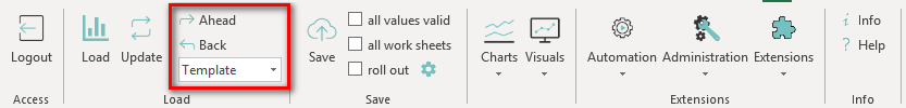 No reading/don't read or only writing | When the template is read-out again to Excel, the content of this column is not reloaded. The values are used for saving to data base. |