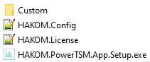 Before installation check if the files HAKOM.Config and HAKOM.License are stored in the setup folder \Setup. After the installation has been completed these files will be pasted in the installation folder.
