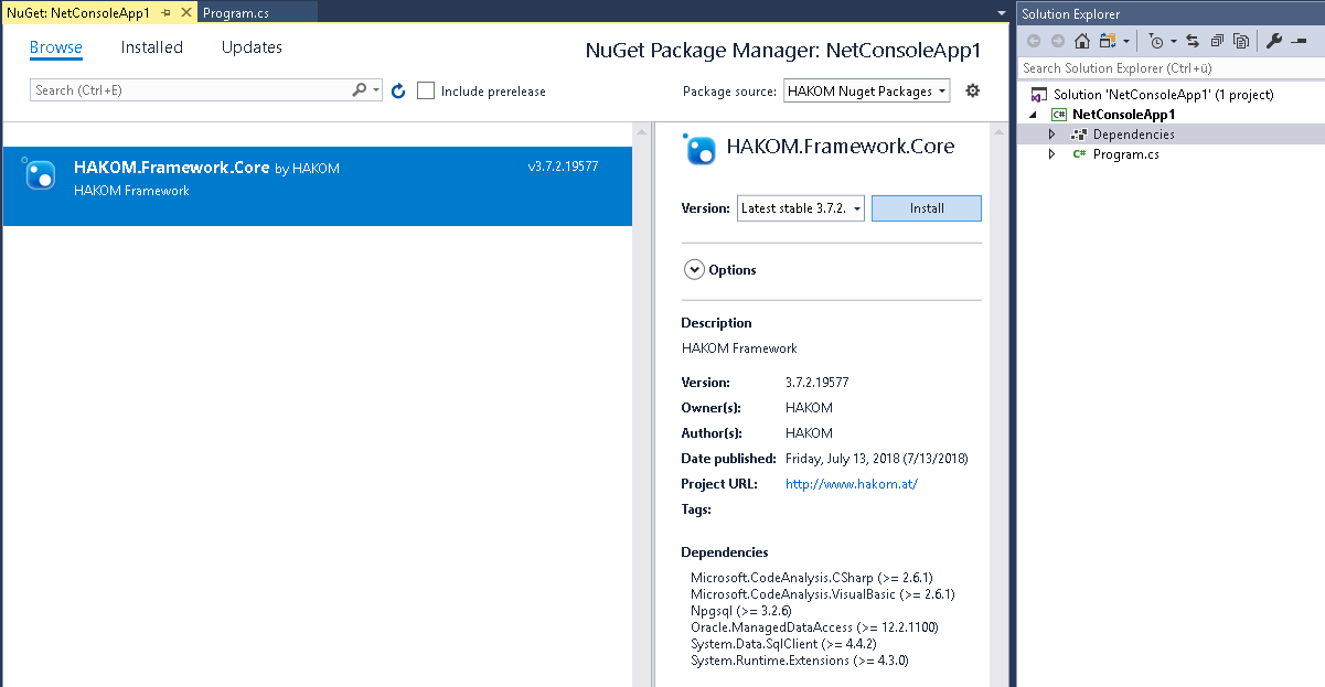 Afterwards copy the provided file "HAKOM.Framework.Core.{version}.nupkg" in the given folder.