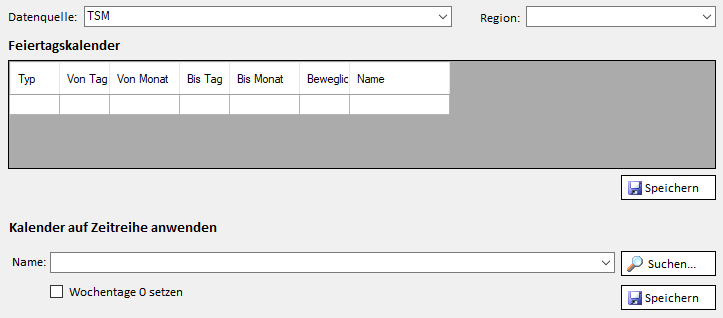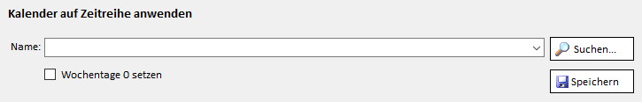 Im Feld "Kalender auf Zeitreihe anwenden" kann eine Zeitreihe, wie aus der TSM App gewohnt, durch Eingabe des Namens ins Drop Down Feld oder über die Zeitreihensuche angegeben werden.