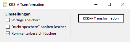Durch Klick auf den Button „KISS A Transformation“ wird ein HAKOM-Zeitreihen-Blatt in das KISS-A – Format umgewandelt.