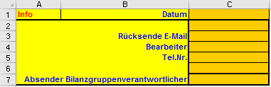 Hier können in Spalte C das Datum, die Rücksende E-Mail Adresse, der Bearbeiter, dessen Telefonnummer und der Bilanzgruppenverantwortliche eingetragen werden.
