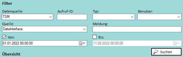 Das Ergebnis der Suche wird unter Übersicht bzw. Protokolleinträge in einer Tabelle angezeigt.