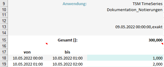 Sollen Daten auf eine Notierungszeitreihe gespeichert werden, muss die zusätzliche Zeitdimension ebenfalls angegeben werden. Dies erfolgt in Excel Vorlagen in Zeile 13: