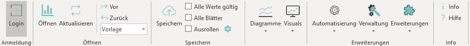Einige der aus MS Excel bekannten Ribbons stehen auch bei der Verwendung von TSM+ als Buttons in der Menüleiste zur Verfügung.