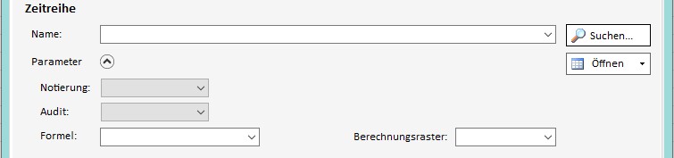 - Wählen Sie eine Zeitreihe, indem Sie ihren Namen in das Drop Down Feld "Name" eingeben, oder mittels der Zeitreihensuche über den "Suche"-Button danach suchen.