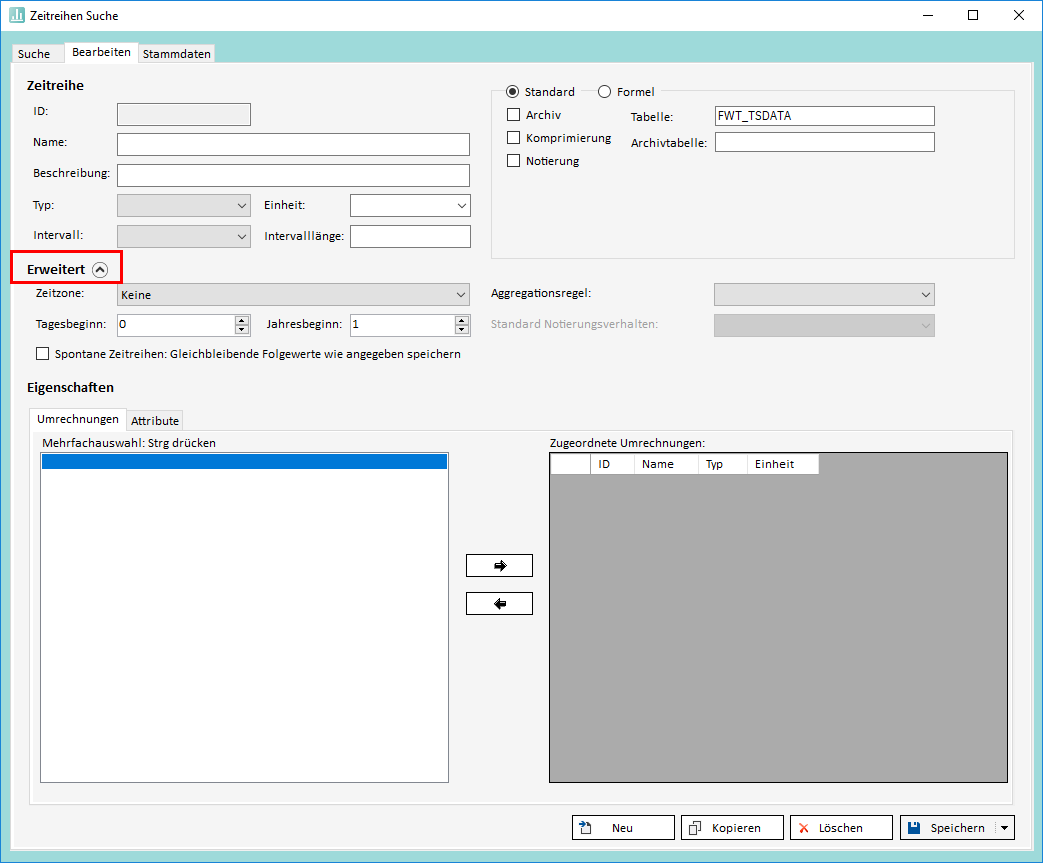 Alle anderen Felder, auch die Zuweisung von Attributen/Umrechnungszeitreihen sind optional.
