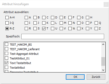 So wird ein Fenster geöffnet, in dem nach den gewünschten Attributen gesucht werden kann. Anschließend wird die Auswahl einfach mit "OK" bestätigt: