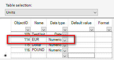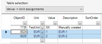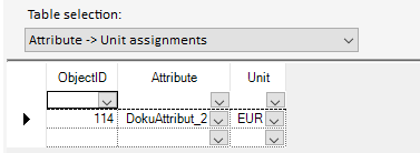 In this example the attribute "List Testattribut" was assigned a unit, which can have the values "1" or "2".