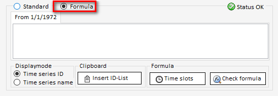 In this example the name of the time series contains quotation marks. To process these, for each quotation mark in the name, another one has to be added in the formula.
