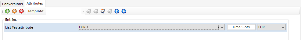 In this example the time series was assigned the attribute "List Testattribut" with the unit "EUR" and one of its values.