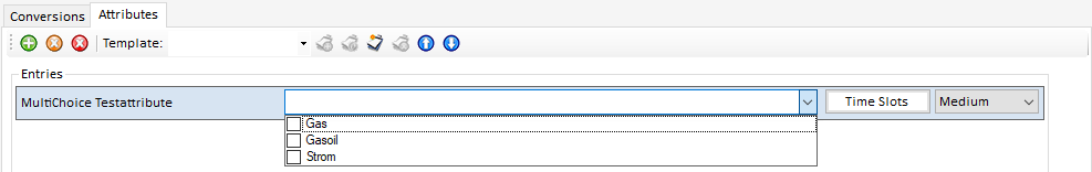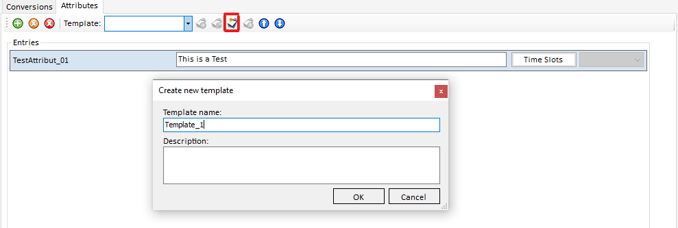 It is possible to assign attribute values that change over time. This can be achieved by clicking on the "Time Slots" button.