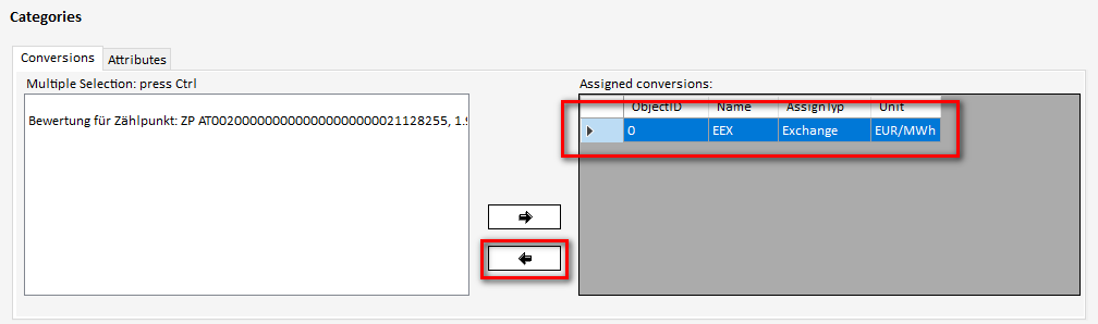 Select the conversion time series that should be removed from the assigned conversions and click on the arrow-left button: