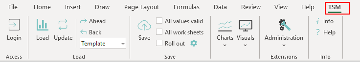 The tab "TSM" is now visible in the Excel ribbons menu.
