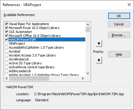 The library can be referenced by selecting "HAKOM PowerTSM":