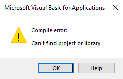 However, for existing Excel workbooks that already had a reference to the library, the following error is displayed when a VBA function is run: