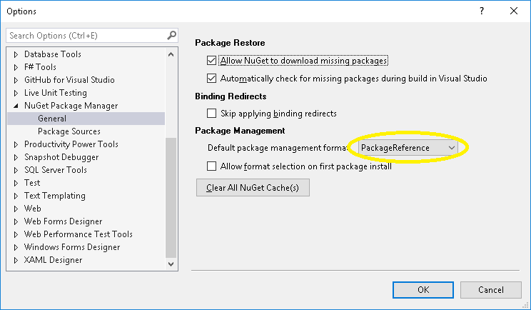 The default package format can be configured here in Visual Studio: